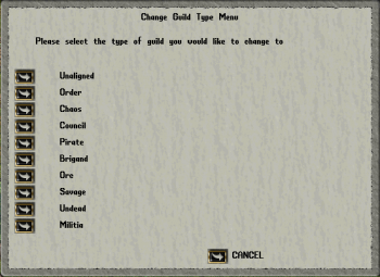 The Alignment system is a guild-based notoriety system designed to support PvP and roleplay. Guildmasters may align their guild with one of several NPC factions.